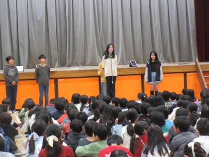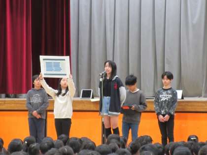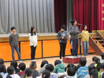 土曜授業の朝の6年生スピーチは今年度の定番となりました。今日も6人の6年生が身近な生活の中から話題を考えてくれました。