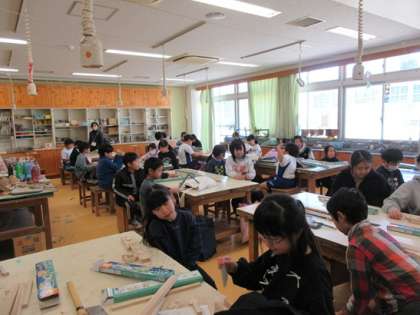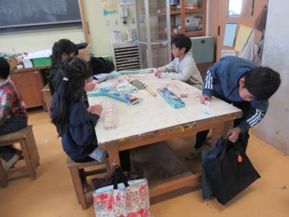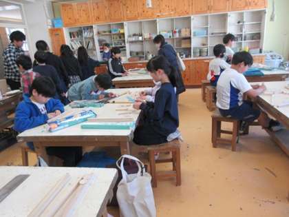 今日から本格的にのこぎりを使うようです。先生の話をよく聞いて作業しましょうね。