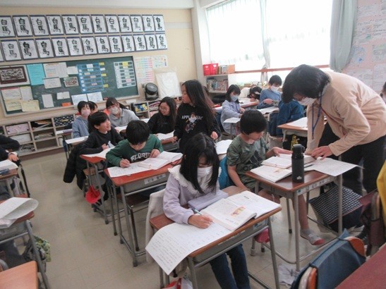 漢字の熟語のつくり方を元に意味を想像し、国語辞典を使って確かめています。