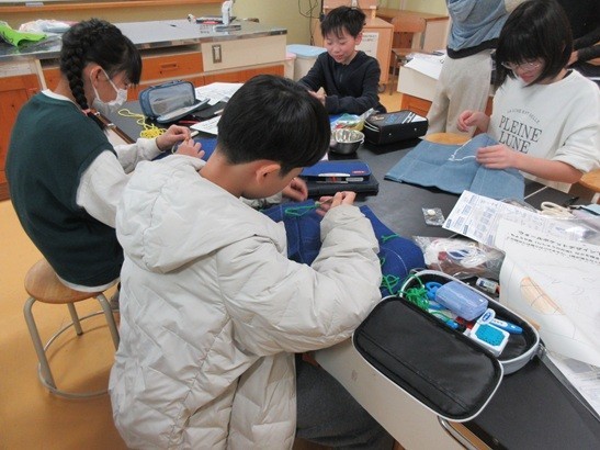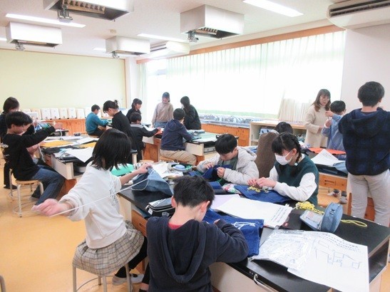 裁縫実習で製作しているウオールポケットが完成に近づいてきました。