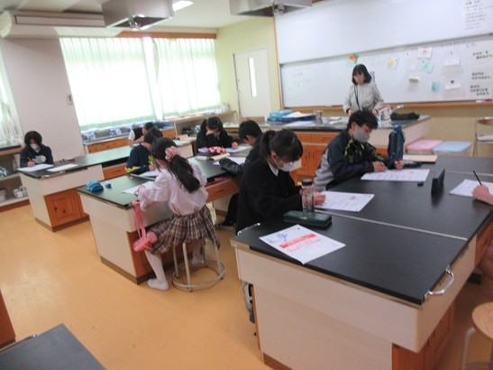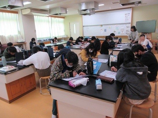 教室へ戻る時間も惜しんで学習しています。子ども達はどんな場所でも、真剣そのものです。