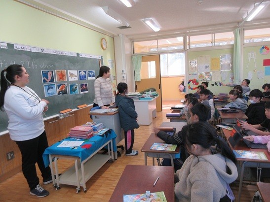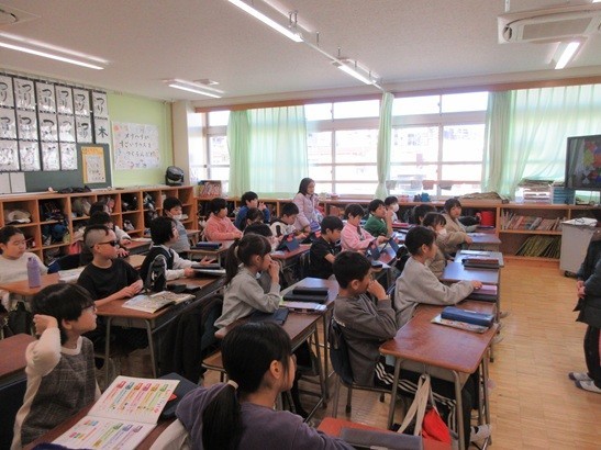 簡単な図形を組み合わせて作られた図が何を表しているかを考えます。ヒントと答えはもちろん英語です。