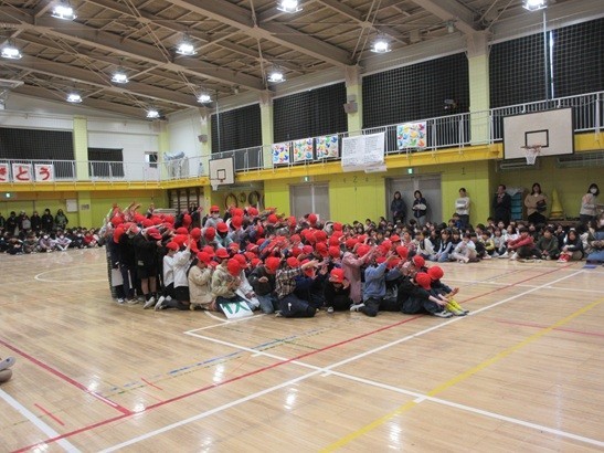 中学校に行っても頑張ってほしい気持ちを、ハートで表しました。