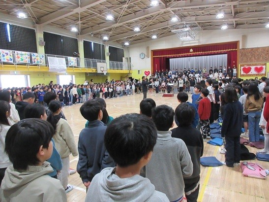 最後は全校で合唱です。卒業まであとわずか、楽しく6年生と過ごしましょう。
