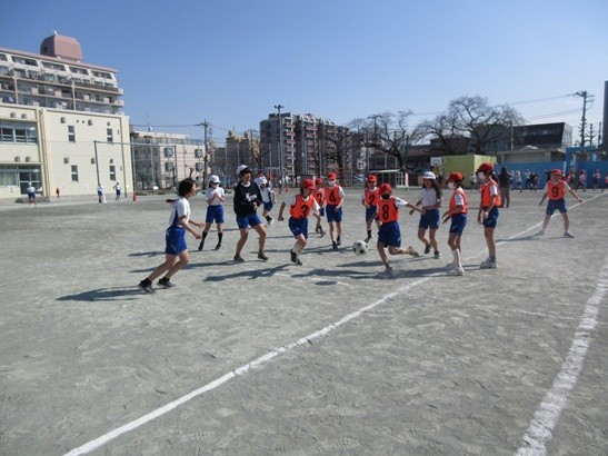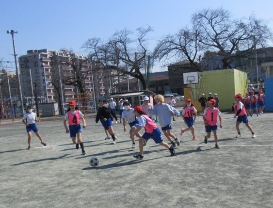 校庭ではサッカーです。5・6年生とも、真剣にボールを追いかけました。