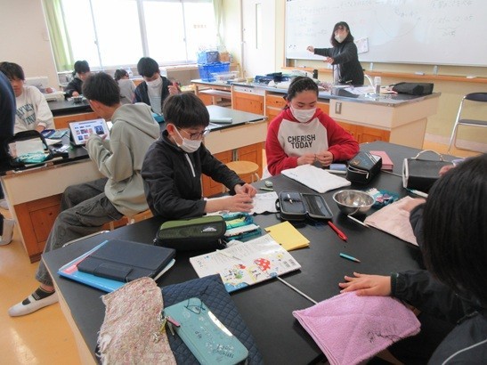 最後の裁縫実習です。手縫いの子もいれば、ミシンを使っている子もいます。ひと針ひと針に心を込めて製作です。