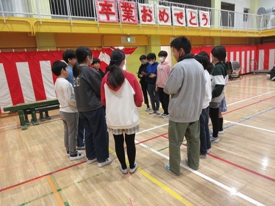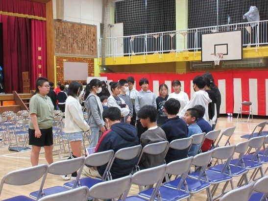 6年生にとっては、卒業証書授与と同じくらい大事の門出の言葉の練習です。パートごとに分かれ、確認しあいながら進めています。