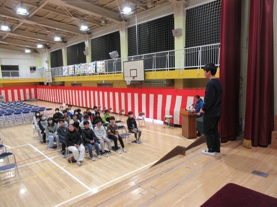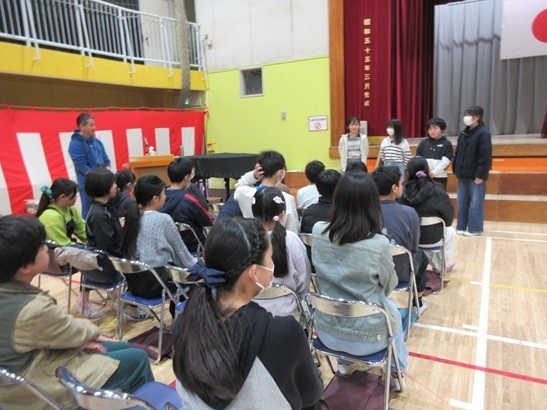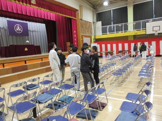 卒業証書授与の練習に臨んだ6年3組です。1時間目の今日の最初の練習でした。呼名の後の決意の言葉についても、友だち同士で確かめ合いながら進めています。