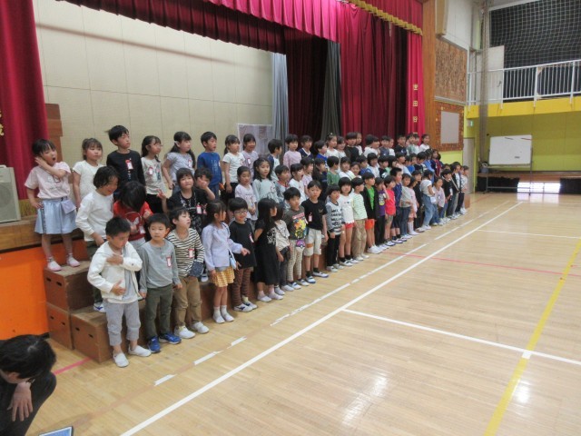 覚えたばかりの校歌を全校で元気よく歌いました。