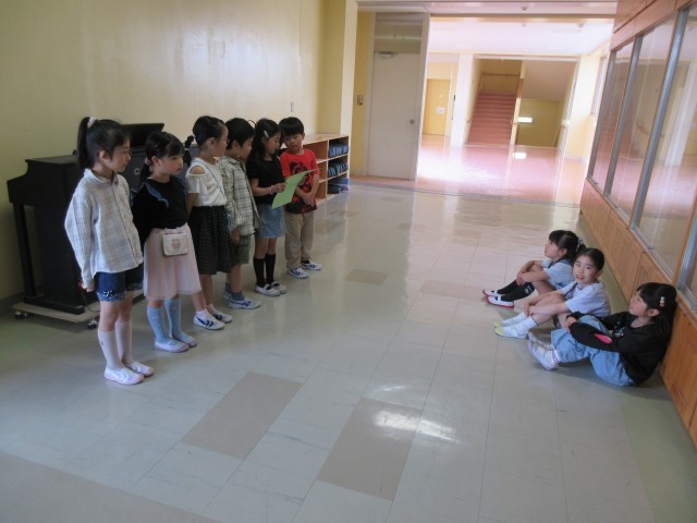 今日は2年生と1年生が学校たんけんをします。