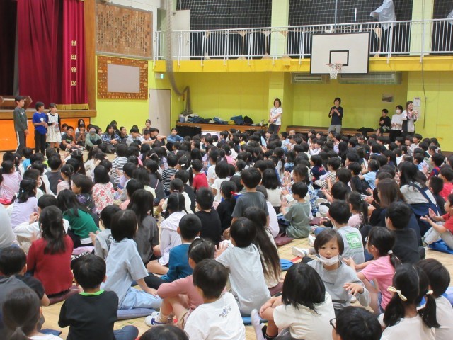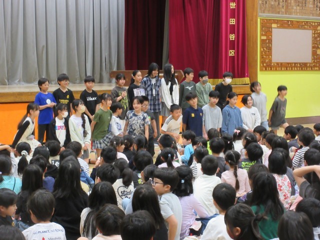 今日の集会は学年ごとに手拍子を合わせる参加型の集会でした。