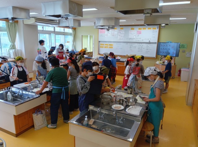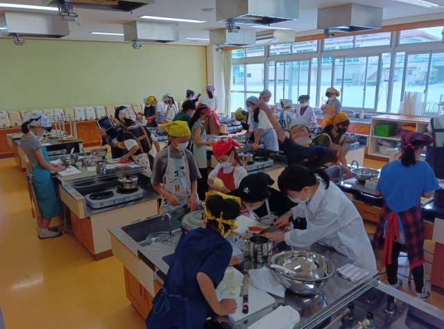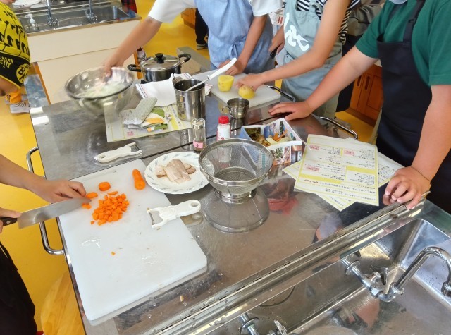 川場移動教室へ向けて、調理実習です。手元に気を付けて、真剣に調理しています。美味しく完成し、みんなで楽しくいただきました。