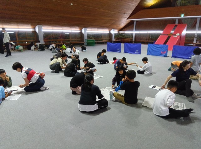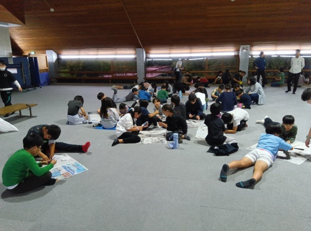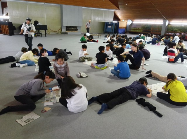 友達と楽しく会話をしながら、ひたすら紙やすりで表面や形を整えています。