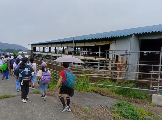 ビニールハウス、牛舎などを見ながら歩き、川場学園との交流場所に到着しました。