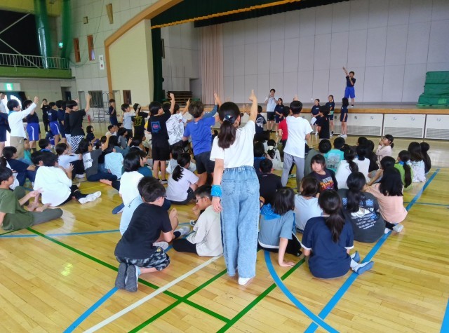 交流会が始まりました。ジェスチャーゲームを楽しそうにやっています。