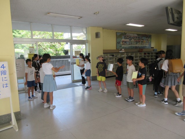 登校時刻に合わせて代表委員の児童が募金活動をしました。