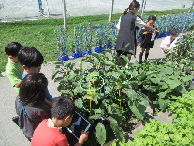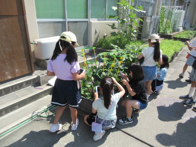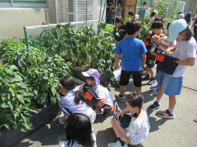暑い日が続いています。2年生の育てている夏野菜も、収穫できるくらいに生長しています。