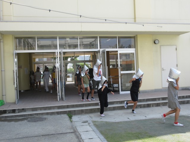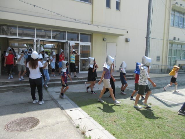 今日の訓練は火災からの避難でした。静かに素早く避難できました。