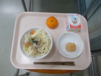 【献立】・肉うどん・きなこおはぎ・冷凍みかん・牛乳
