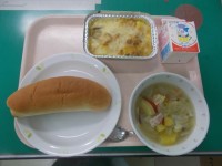 【献立】・コッペパン・ポテト豆乳グラタン・さつまいものポトフ・牛乳