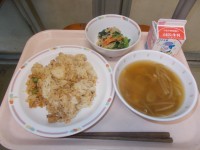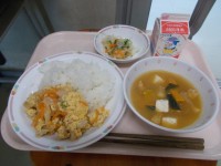 【献立】・ハッシュドチキンライス・イタリアンサラダ・キャベツのコンソメスープ・牛乳