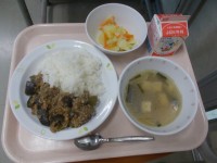 【献立】・チキンカレーライス・白菜と大根のサラダ・くだもの(みかん)・牛乳