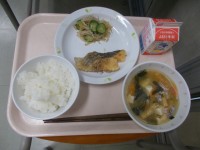 【献立】・ごはん・魚の照り焼き・わかめサラダ・豚汁・牛乳