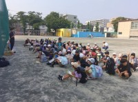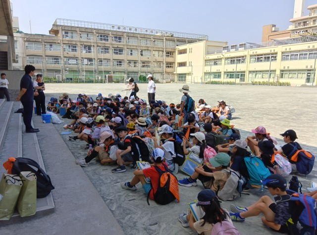 1年生が3クラス合同でお祭り(あきまつり)をしています。