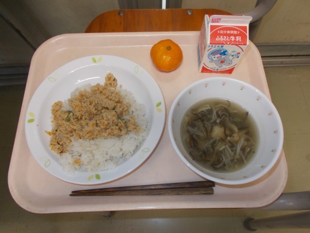 【献立】・どんどろけ飯・米粉のすいとん・愛マドンナ(愛媛みかん)・牛乳