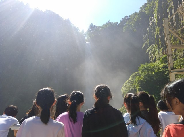 下船後は、バスで日本三大名瀑の華厳の滝へ。