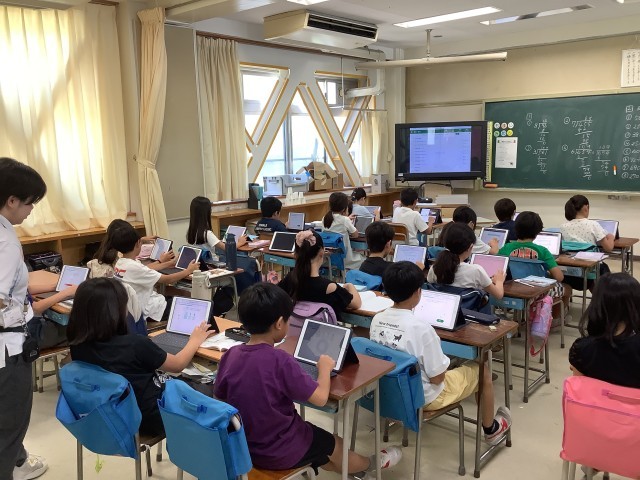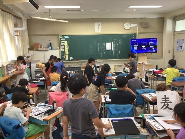 さて、それぞれの学級で授業が始まりました。当番を決めたり、キュビナのやり方を確認したり、書写に取り組んだりしました。暑さに負けず頑張っています。