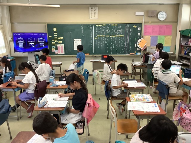 当番決めにガラガラポン!盛り上がりながら決めています。テストに取り組む様子もありました。頑張りがいいですね。