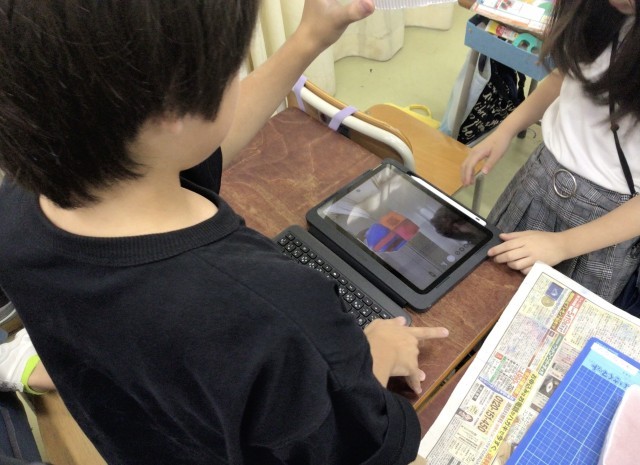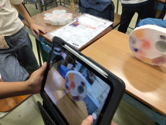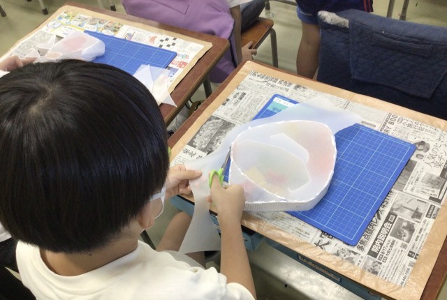 図画工作の時間、トレーシングペーパーを使って工作をしました。光を通す素材のよさを考えながら形やその配置に工夫をして、一人一人がものづくりの楽しさを感じながら活動する様子が見られました。出来上がった作品を光に透して見たり、タブレットで写真を撮って確認したりと、それぞれ思いをもって仕上げることができました。