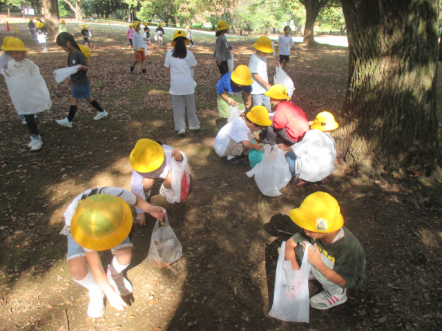 生活科の「あきとともだち」の学習の一環として、17日(金)に祖師谷公園に行きました。葉っぱの色づきに気づいたり、袋いっぱいにどんぐりを集めたりしました。