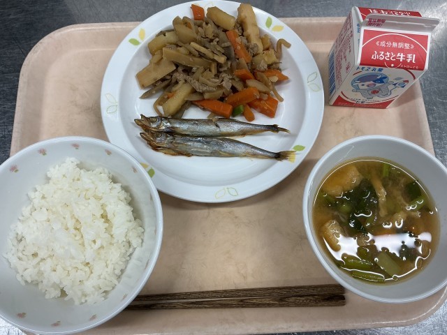 有機米ごはん 牛乳 焼きししゃも きんぴら煮 切り干し大根のみそ汁