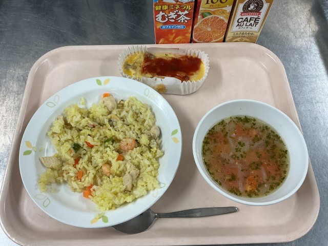 【世界の料理:スペイン】パエリア スペイン風オムレツ ソパデアホ 飲み物セレクト(コーヒー牛乳/麦茶/オレンジジュース)