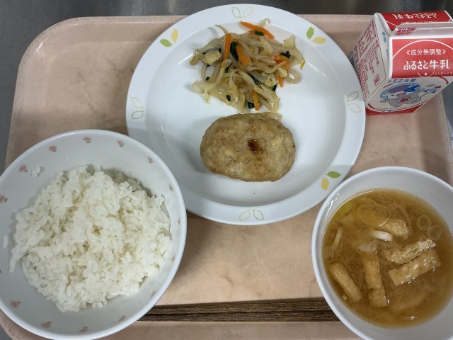 有機米ごはん 牛乳 豆腐ハンバーグ 野菜のおひたし みそ汁