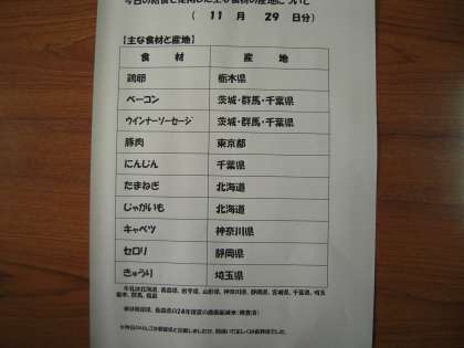29日の給食食材の産地です。昨日のリンゴの産地を愛媛県と記載しましたが、正しくは長野県でした。お詫びして訂正します。