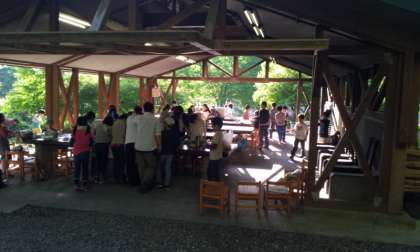 飯ごう炊飯の後片付けです。とても良く片付けられる児童と??