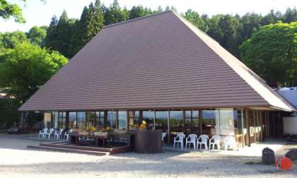 食堂を外側から写しました。とても素敵な建物です。