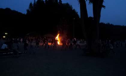 暮れなずむ川場村の空。なかのビレッジのキャンプ場でキャンプファイヤが始まりました。