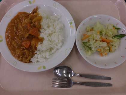 ハッシュドポークライス・牛乳・アスパラガス入りサラダ