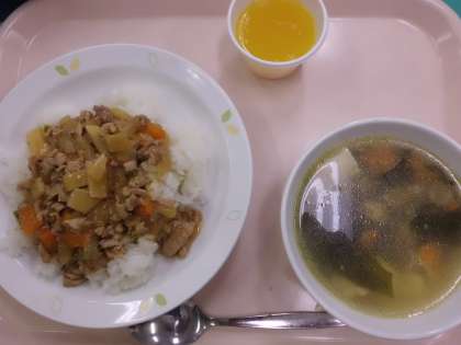 スタミナ丼・牛乳・わかめスープ・みかんゼリー