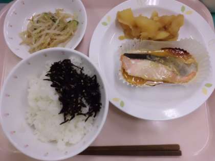 ごはん・牛乳・ひじきのふりかけ・魚のみそマヨネーズ焼き・