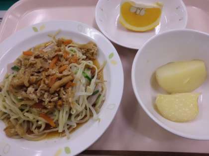 冷やし中華・牛乳・じゃがいものバター焼き・くだもの