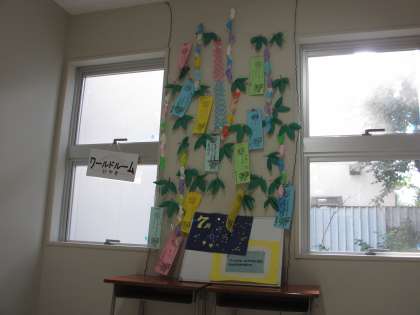 ワールドルームけやきでは、短冊に願い事や将来の夢を書きました。