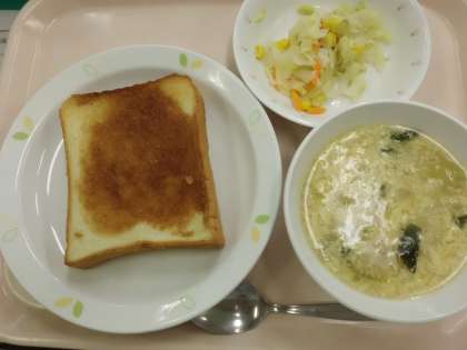 シナモントースト・牛乳・チーズのふわふわスープ・コーンサラダ