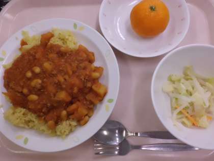 チリビーンズライス・牛乳・キャベツサラダ・くだもの