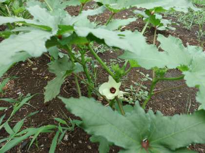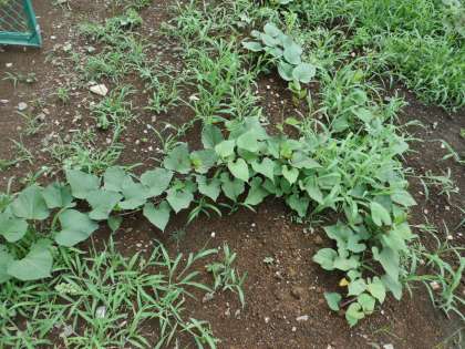 2年生みんなで植えたサツマイモは、たくさん葉をつけています。
