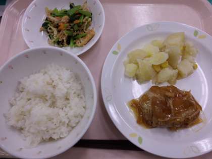 ごはん・牛乳・むろあじバーグ・コーンポテト・おひたし